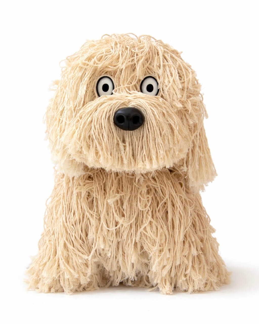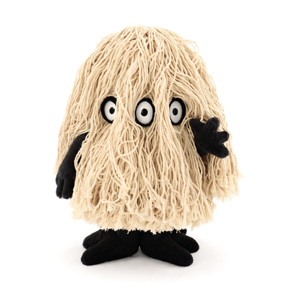 モップおばけの姿を見たものは皆、綺麗好きになってしまうという。/ 35cm / Cotton, alpaca, leather, glass eyes (2022)