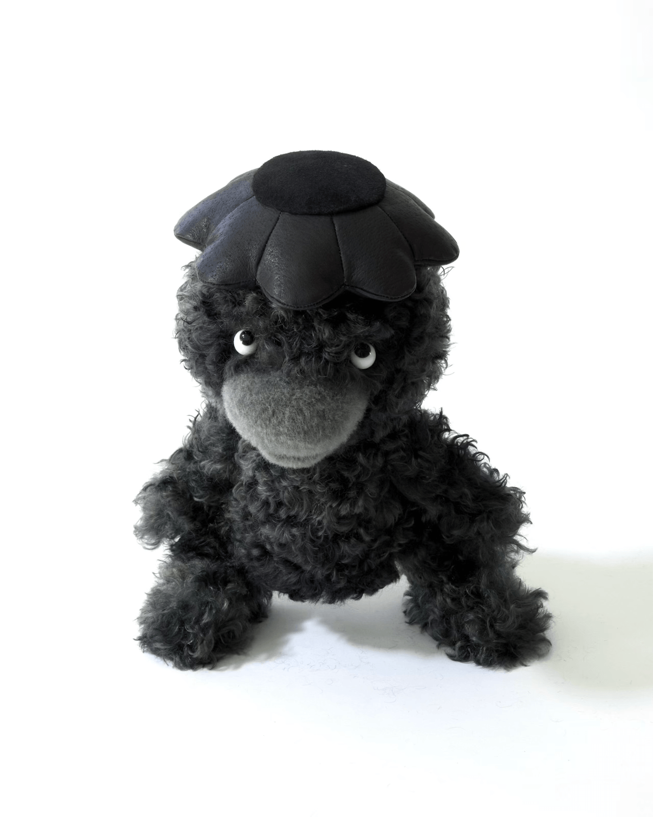 Mohair, alpaca, leather, polyester, polymer clay, stainless steel, glass (2024)